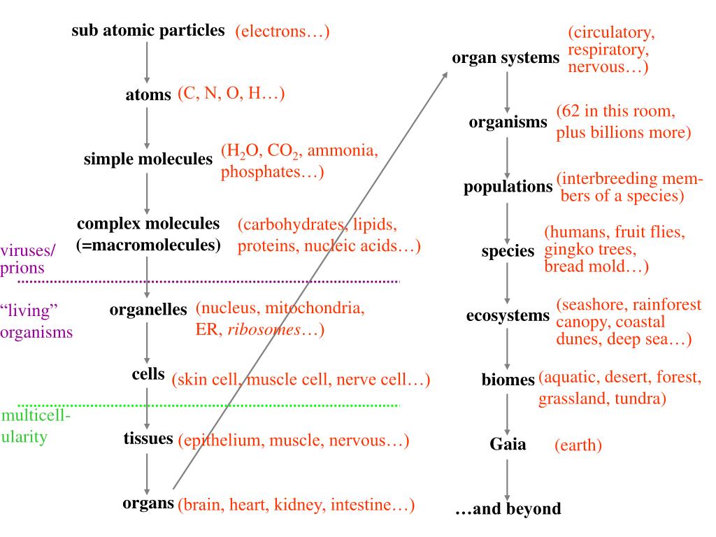 13.01.2016 · atom molecule macromolecule organelle cell cell tissue organ organ system organism organism population community ecosystem/biome biosphere levels of organization matter living… A bunch of tissues organ system: Levels of cellular organization atom molecule organelle cell tissue organ organ system organism... 13.01.2016 · atom molecule macromolecule organelle cell cell tissue organ organ system organism organism population community ecosystem/biome biosphere levels of organization matter living…